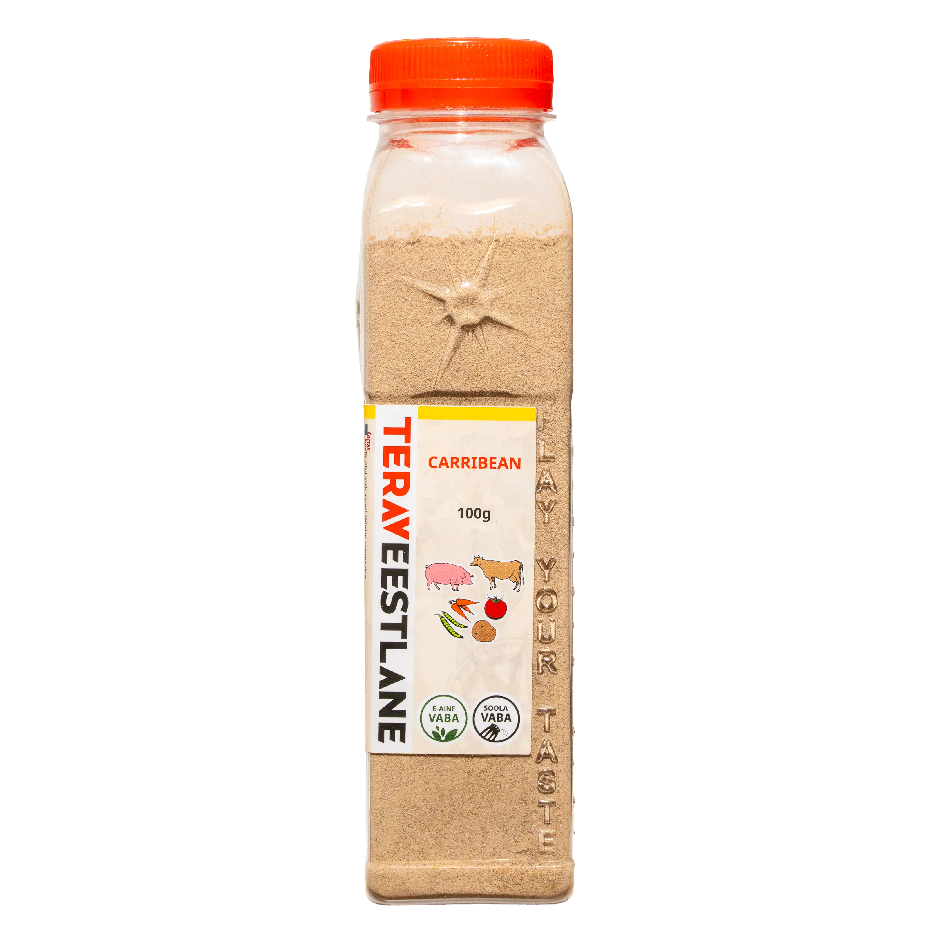 Kuostumus: sipuli, kaneli, timjami, cayennepippuri, maustepippuri. Caribbean mausteseos on mideompi, mutta luonteikas. Joko siitä tykkää tai ei ollenkaan. Fakta – jos ei kokeile, ei saa tietää. Sopii ehdottomasti sianliha, naudanliha, lammas, grillimarinadiin, paistinperunoihin, perunamuusiin, pataan, makaroniin, lihapaistiin, jauhelihaan. 3-4 tl Carribbean mausteseosta per kilo liha. Ribsit, kassler, kasvikset ovat kuin luotu ruoan laittamiseksi Caribbean mausteseoksella.